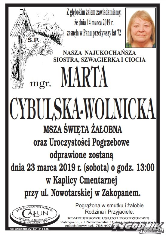 Pani Marta Cybulska Wolnicka była znaną działaczką Uniwersytetu Trzeciego Wieku w Zakopanem. Jej koleżanki wypowiadają się o niej w samych superlatywach.