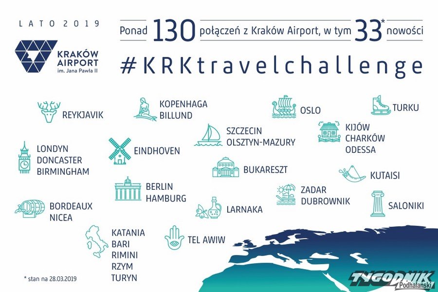 Pasażerowie krakowskiego lotniska będą mogli skorzystać z oferty ponad 130 połączeń, w tym są zupełnie nowe kierunki: Chorwacja, Gruzja, Rumunia, Islandia.