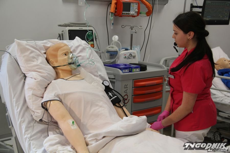 - Szef zadzwonił, duszności dostałem, ciśnienie skoczyło - żali się pacjent na szpitalnej sali. Tyle, że sala to uczelniana, pielęgniarki dopiero studiują, a pacjent jest z plastiku.