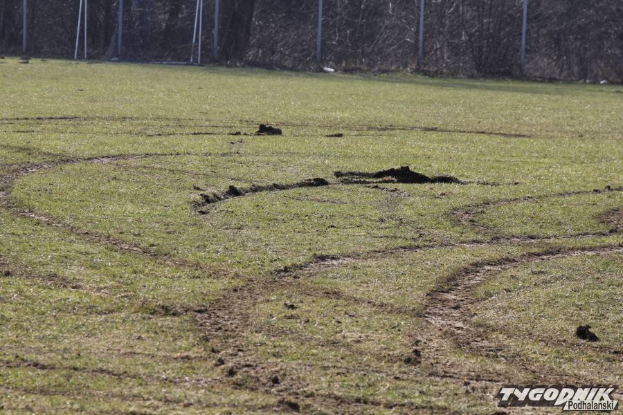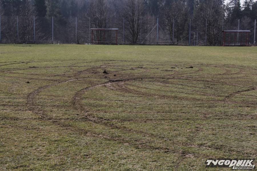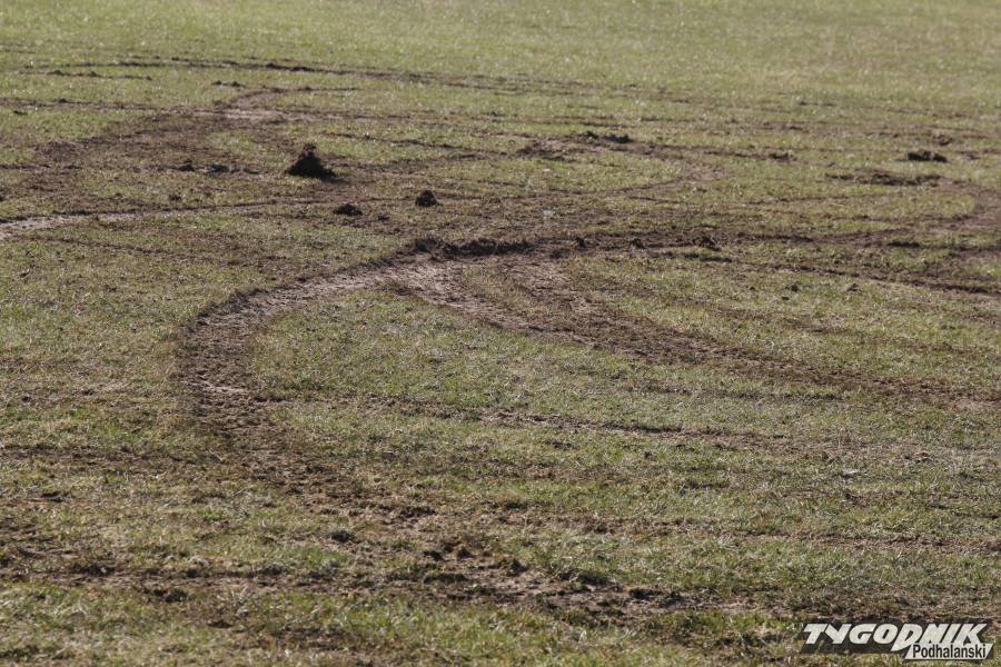 Nieznani sprawcy zniszczyli nawierzchnię stadionu w Sieniawie.