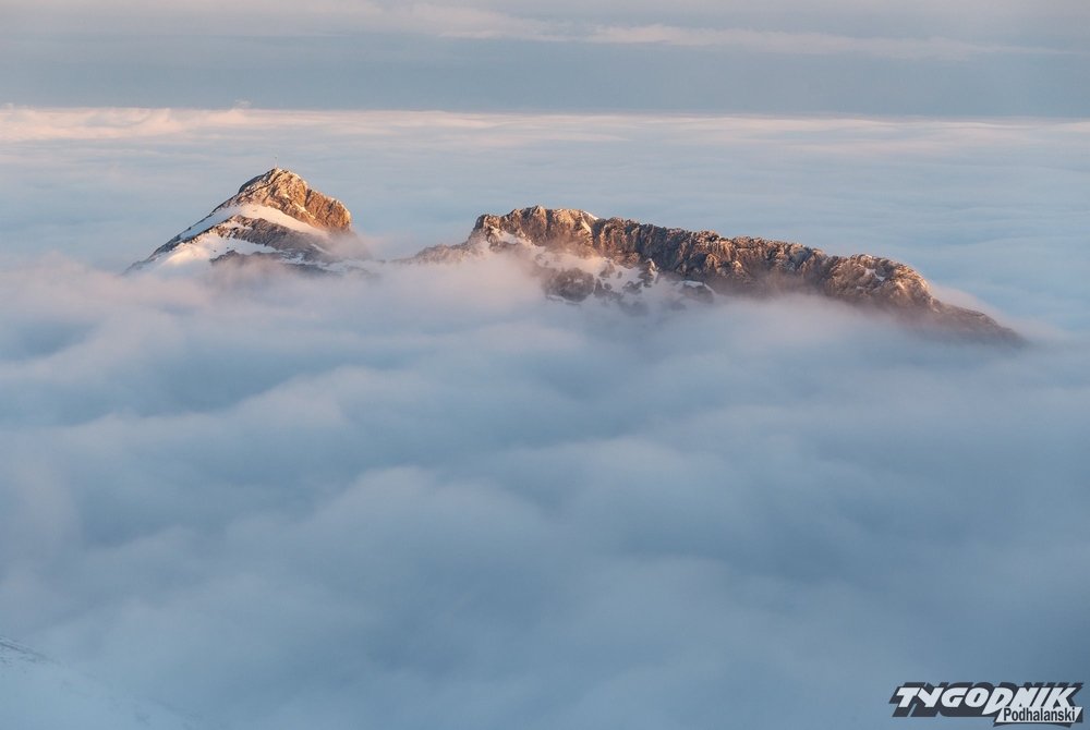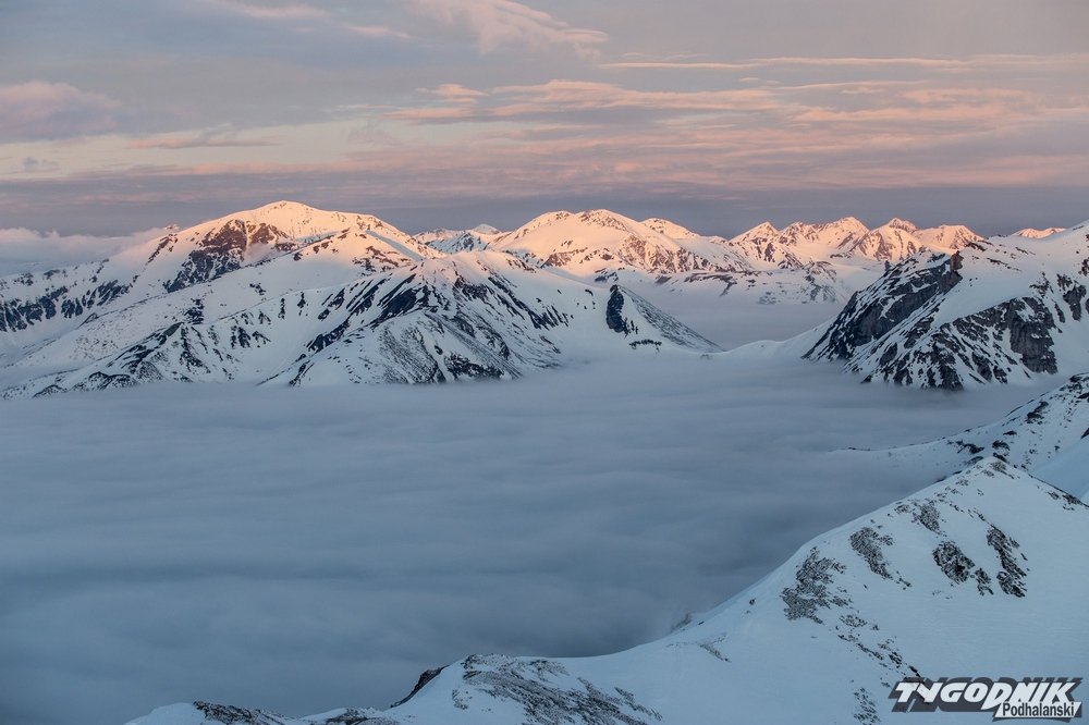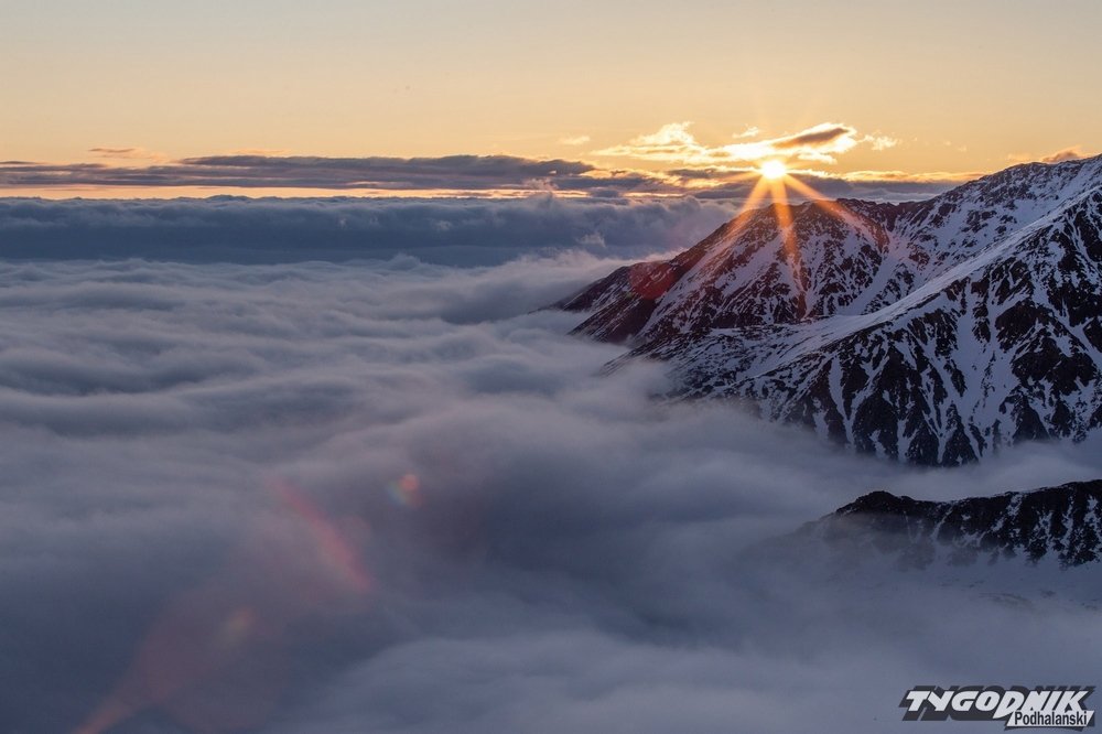 Piękny wschód słońca w Tatrach, a Podhale pod chmurami