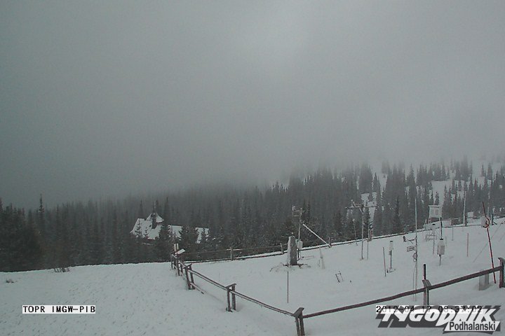 Po wczorajszej pięknej pogodzie nie został nawet ślad. Na Kasprowym Wierchu - 4 st. C. i mamy opady śniegu.