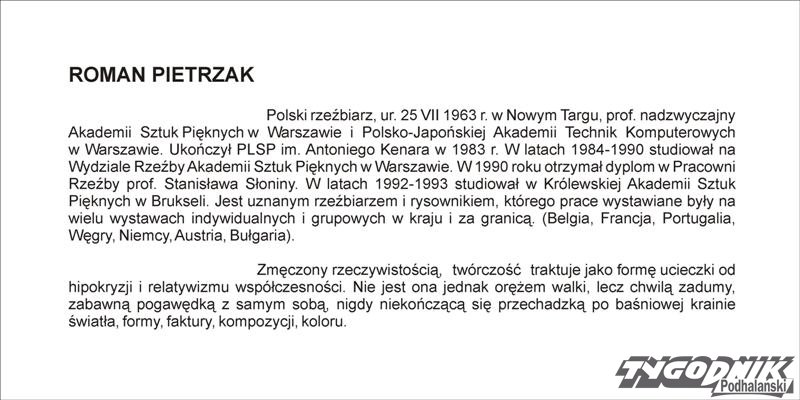 Nowotarska galeria BWA „Jatki” zaprasza w piątek, 26 kwietnia, o godzinie 18, na finisaż wystawy Romana Pietrzaka „Rzeźba i rysunek”.