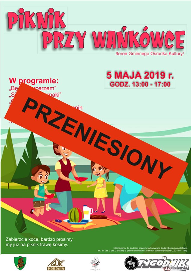Majówka przy "Wańkówce" została odwołana. Jak informują organizatorzy, zaplanowany na najbliższą niedzielę 5 maja piknik zostaje przeniesiony ze względu na fatalne prognozy. Niedziela ma być deszczowa, co nie sprzyja wspólnej zabawie i integracji "pod chmurką".