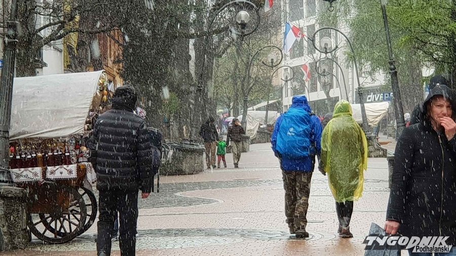 Niedziela na Krupówkach czyli jak wygląda koniec majówki pod Giewontem? Jak turyści radzą sobie z zimową aurą? Zobaczcie sami.
