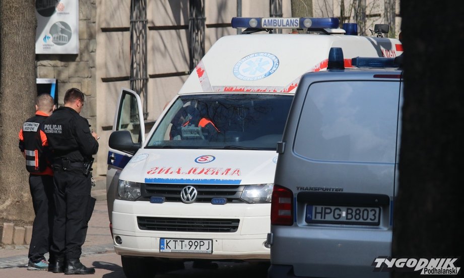 Ok. godz. 9 w rejonie poczty na Krupówkach przyjechała karetka pogotowia i policja. Na deptaku leżał mężczyzna, który miał zakrwawioną nogę.