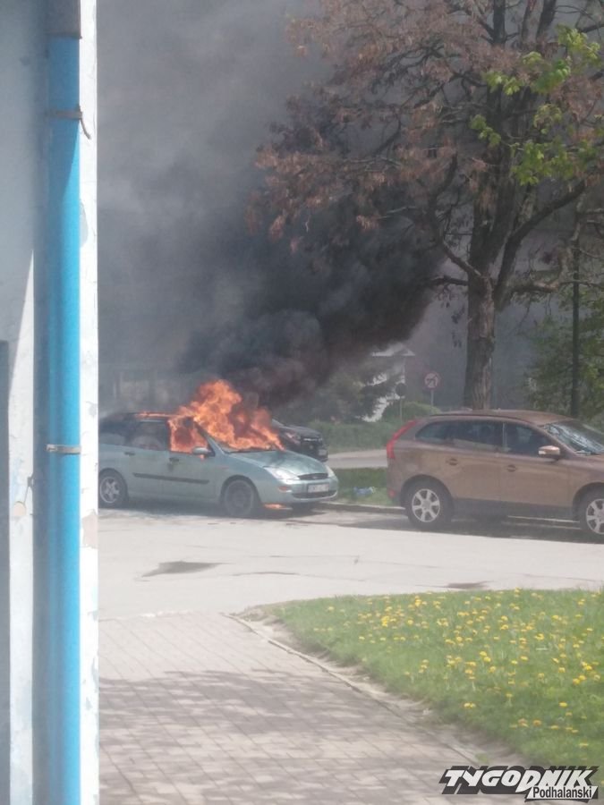 Na ul. Podtatrzańskiej w Nowym Targu zapalił się samochód.