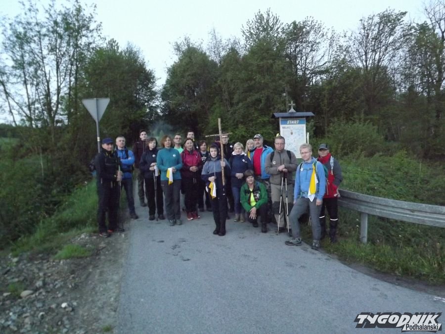 Jest niedziela, 19 maja, godz. 4.20. Grupa 20 osób melduje się na starcie. Zapowiada się piękny dzień. Każdy uczestnik otrzymuje przypinkę i papieską, żółto - białą flagę. Jeszcze pierwsze wytyczne, wspólne zdjęcie i modlitwa napisana przez ks. Witolda z Tymbarku specjalnie dla uczestników