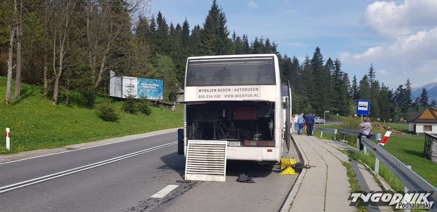 Pojazd stoi w zatoczce, ale częściowo wystaje na drogę.