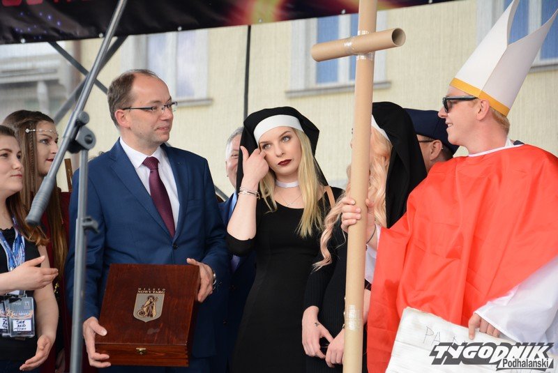 Oburzenie radnego wywołały ostatnie juwenalia zorganizowane przez Podhalańską Państwową Wyższą Szkołę zawodową na Rynku nowotarskim. Podczas otwarcia imprezy na scenie pojawili się przedstawiciele lokalnych władz między innymi - wicestarosta Bogusław Waksmundzki i burmistrz Grzegorz Watycha. Obok notabli stały ubrane skąpo studentki przebrane za zakonnice a także student parodiujący papieża, dzierżący w ręce krzyż wykonany z rolek po papierze. Zdaniem radnego Kurańdy takie zachowanie można interpretować jedynie jako: profanację i wyszydzania kościoła. Radni mają za złe szczególnie przedstawicielowi władz powiatowych, że widząc prowokacyjne zachowanie studentów pozostał na scenie i nie reagował. - Milczenie w tym wypadku jest oznaką zgody. A czy jest zgoda? Ja jako radny mówię - na to zgody nie ma – grzmi Krzysztof Kurańda.