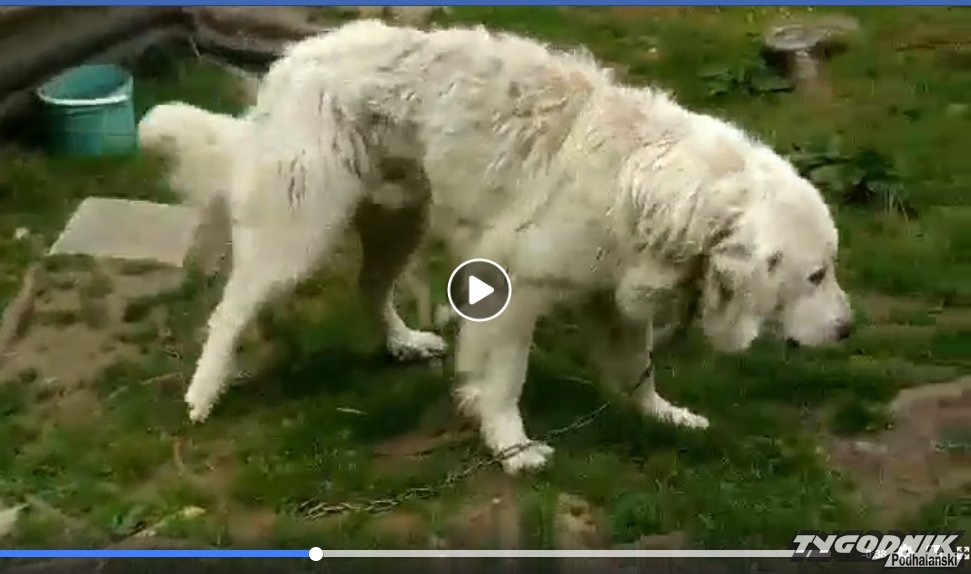 Na Facebooku pojawił się film pokazujący wychudzonego owczarka podhalańskiego, którego buda ustawiona jest w pełnym słońcu.