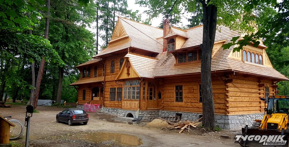 Chodzi oczywiście o willę Koliba przy ul. Kościeliskiej. Widać już odnowioną elewację. W środku też zmieni się wiele - będzie m. in. nowa instalacja elektryczna. Wejście ma się znajdować z tyłu budynku, a wyjście z przodu. Zagospodarowany zostanie również park przed domem. Remont kosztuje 2.8 miliona złotych.
