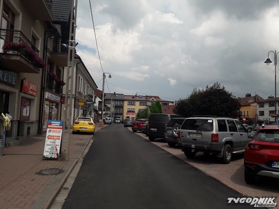 W Rynku w Czarnym Dunajcu na bocznej drodze jest nowy asfalt.