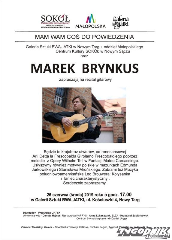 Nowotarska galeria BWA „Jatki” zaprasza w najbliższą środę, 26 czerwca, na recital gitarowy Marka Brynkusa.