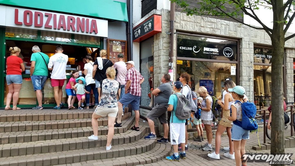 Na Krupówkach ustawiła się długa kolejka po orzeźwiające lody. Nic dziwnego, bo temperatura przekroczyła dziś 28 st. C., a miało być nieco chłodniej. Najbardziej upalny dzień zapowiadany jest na środę.