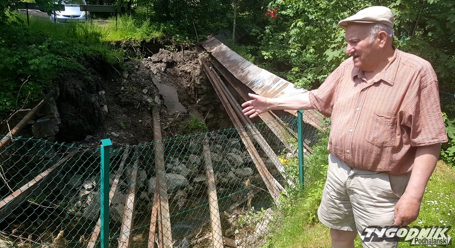 Przypomnijmy: na ulicy Kaszelewskiego w Zakopanem obok mostu prowadzącego pod wiadukt zawaliło się żelazne umocnienie starego przejazdu. Na dnie potoku zalegają też betonowe przęsła. Pan Mieczysław Ziemianin, który mieszka nad potokiem alarmuje - taka sytuacja grozi katastrofą. W czasie zapowiadanych silnych opadów potok może niebezpieczne wezbrać i zalać pobliskie domy.