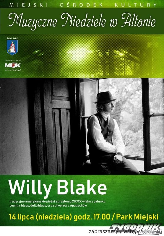 Po New Market Jazz Band - Willy Blake. W najbliższą niedzielę, 14 lipca - drugi koncert z letniego cyklu „Muzycznych niedziel w altanie”.