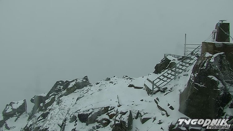 W tej chwili na Łomnicy termometry wskazują - 1 st. C. i sypie dalej. W nocy temperatura spadła do - 3 st. C. Białą pokrywę śniegu widać na internetowych kamerach.