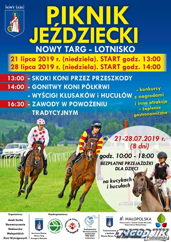 Przez dwie najbliższe niedziele - 21 i 28 lipca, w godzinach 13 - 18, na nowotarskim lotnisku trwać będzie piknik jeździecki.