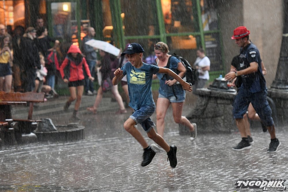 Na Krupówkach nasz reporter Bartłomiej Jurecki uchwycił turystów, którzy najwyraźniej byli zachwyceni deszczem i można powiedzieć, że unosili się nad deptakiem.
