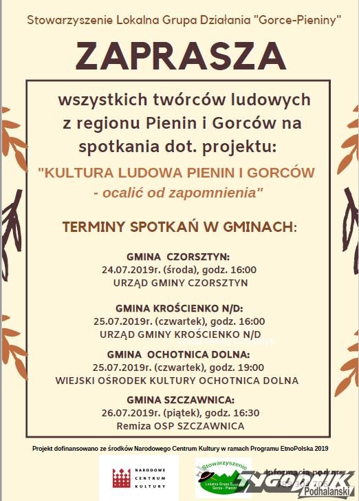 Stowarzyszenie LGD „Gorce-Pieniny” otrzymało ponad 50 tys. zł dotacji na projekt „Kultura ludowa Pienin i Gorców – ocalić od zapomnienia”.