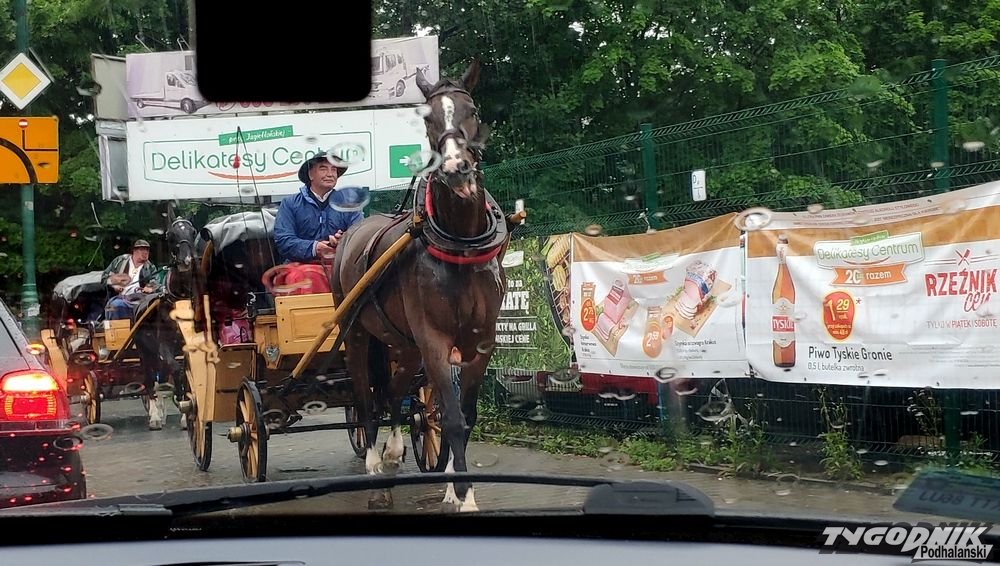 Na ulicach korki, więc dorożki pojechały chodnikiem