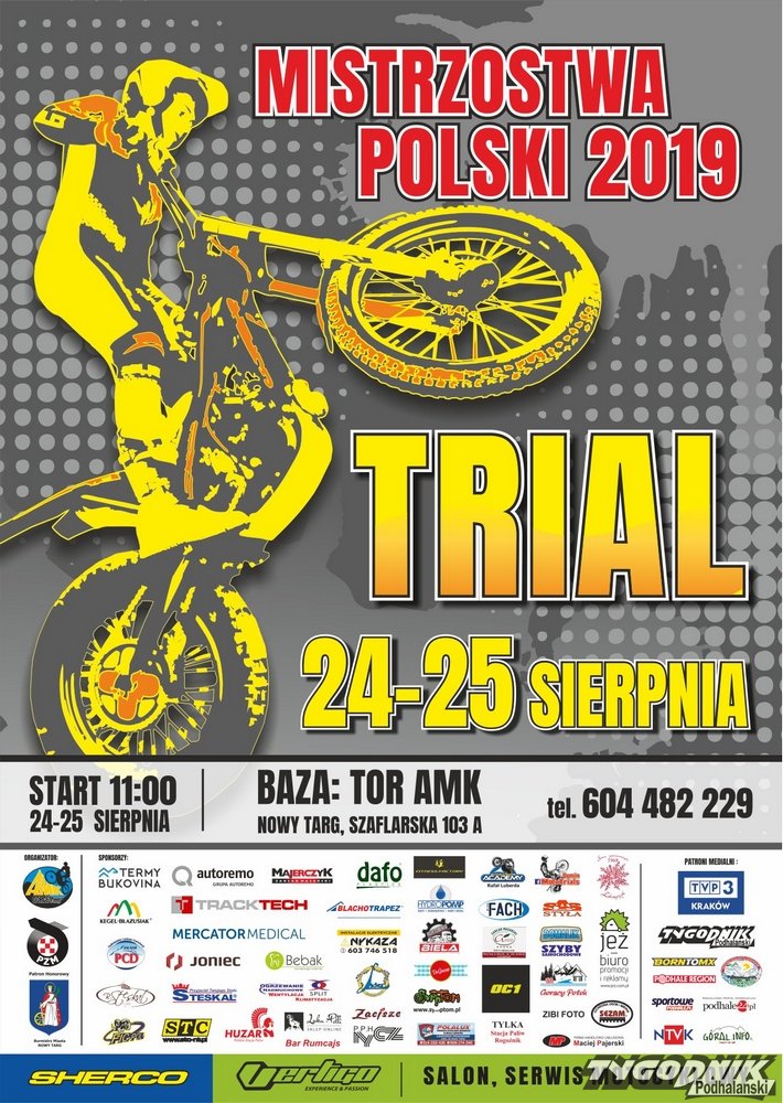 Zarząd AMK "GORCE" w Nowym Targu w dniu 24 -25.08. 2019 r. wspólnie z Urzędem Miasta Nowy Targ w ramach promocji aktywnego spędzania czasu wolnego i zainteresowania sportem motocyklowym "TRIAL" zaprasza na VII i VIII rundę Mistrzostw Polski i Pucharu Polski.