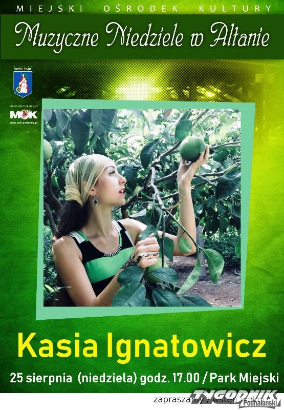 Na zakończenie tegorocznej edycji letniego cyklu „Muzyczne niedziele w altanie”, w najbliższą niedzielę, 25 sierpnia, w nowotarskim miejskim parku wystąpi Kasia Ignatowicz.