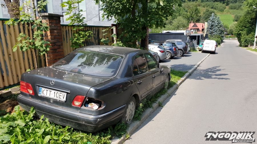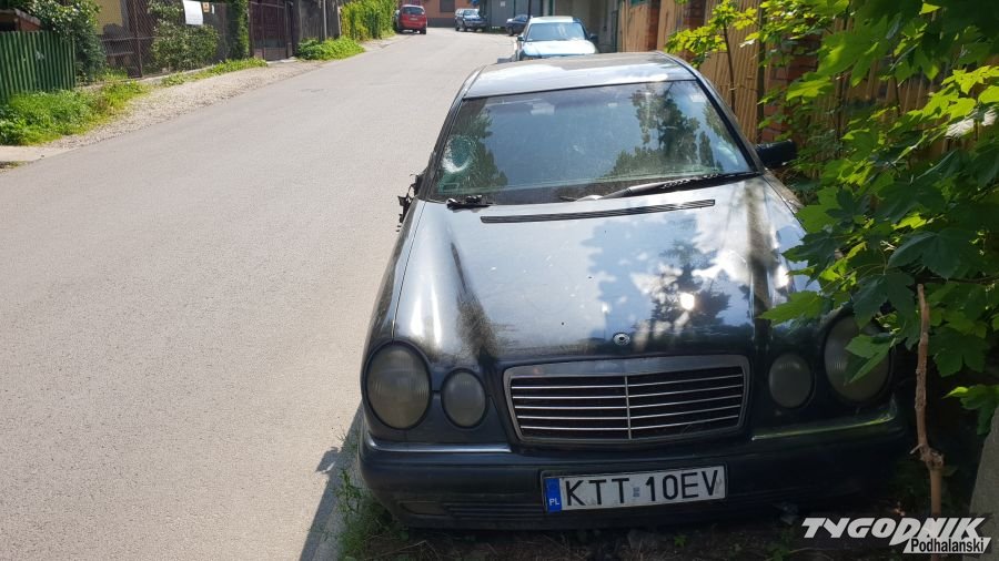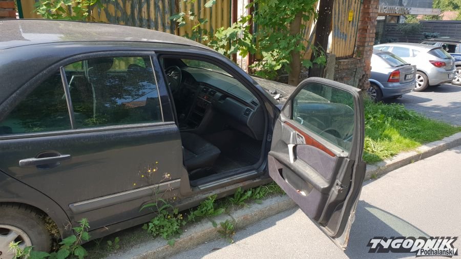 Porzucony mercedes na Kamieńcu w Zakopanem od roku nikogo nie zainteresował poza dziećmi które maja w nim miejsce do zabaw. Samochód jest otwarty, powoli traci części, wciąż nie widać właściciela.
