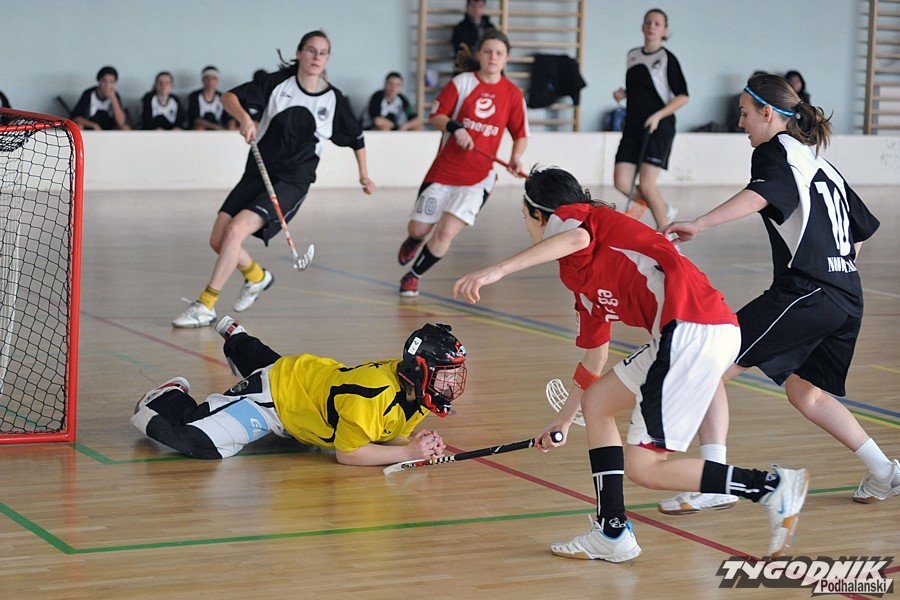 Niestety nie lepiej było również w niedzielnym spotkaniu. Co prawda naszym zawodniczkom jak zwykle nie brakowało ambicji i woli walki, ale na boisku nie wiele miały tak naprawdę do powiedzenia w starciu bardzo rozsądnie i pomysłowo grającymi przeciwniczkami. Pierwsze okazję do zdobycia bramki miały zawodniczki Podhala, jednak Krzystyniak nie trafiła w piłeczkę będąc tuż przed bramką Olimpii. Kiedy w 11 minucie na ławce kar była M. Bryniarska, mistrzynie kraju objęły prowadzenie. Waksmundzka mocno strzeliła z ostrego kąta, piłeczka odbiła się od poprzeczki, następnie uderzyła w kask bramkarki Podhala i wpadła do siatki. Po upływie zaledwie 90 sekund było już 0:2. Bramkarka Olimpii długim podaniem uruchomiła Mroch, a ta w pełnym biegu strzeliła mocno w górny róg nowotarskiej bramki. W drugiej tercji nasze zawodniczki zdobyły bramkę kontaktową, choć piłeczkę do własnej siatki po zagraniu Krzystyniak niefortunnie skierowała jedna z przyjezdnych. Niestety bramka ta nie podziałała na unihokeistki MMKS mobilizująco. Najpierw Stenka, a później Łęgowska pokonały Guzik i druga porażka z rzędu stała się faktem. Tym bardziej, że w trzeciej odsłonie meczu nowotarżanki sprawiały wyraźnie wrażenie pogodzonych z porażką, natomiast zawodniczki z Gdańska ograniczały się do kontrolowania przebiegu wydarzeń na parkiecie. W tej sytuacji kibice nie zobaczyli już więcej bramek i spotkanie zakończyło się porażką MMKS 1:4 „ Niestety zawiodła skuteczność. Dziewczęta oddały w całym spotkaniu zaledwie 17 strzałów, z czego 8 w pierwszej tercji. Stwarzaliśmy sporo sytuacji, ale gorzej już było z ich wykończeniem. Nie można myśleć o wygranej, jeśli zdobywa się w spotkaniu zaledwie jedną bramkę” – podsumował występ swych podopiecznych trener MMKS Podhale, Jacek Michalski.