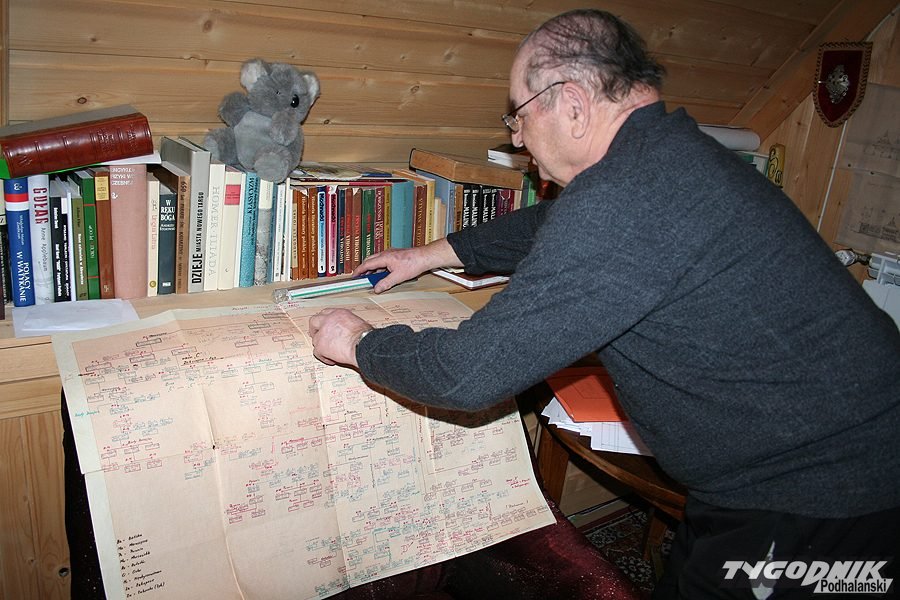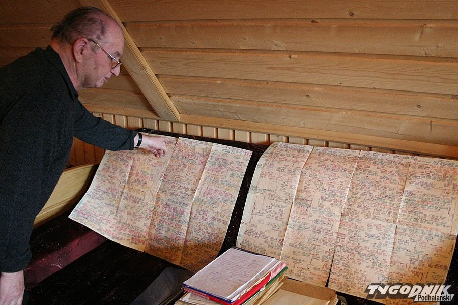 Nic dziwnego, bo ród Gąsieniców jest niepowtarzalnie duży. Badając przeróżne archiwa, twórca największej polskiej genealogii nie napotkał drugiego takiego w kraju. Jako że z wykształcenia jest inżynierem, do drzewa genealogicznego rodu Gąsieniców podszedł w ścisły sposób. – Wziąłem płachtę papieru milimetrowego i zacząłem wykreślać ród Sabały. Jego dzieci, wnuki. Powstała struktura rodowa, dziewczęta, córki. Jak odkryłem, że Sabała się urodził jako Gąsienica, to już z Krzeptowskich wpadłem w Gąsieniców. To już nie było wyjścia, to był wir. Wciągnął mnie jak zaraza – śmieje się Józef Krzeptowski Jasinek. Przypomina, że gdy płachty papieru milimetrowego rozwinął przed profesorskim sztabem Uniwersytetu Jagiellońskiego – byli zszokowani. Potęgą rodu i benedyktyńską pracą, wykonaną w Kościelisku. – Wtedy okrzyknęli to wielkim schematem układu scalonego rodu Gąsieniców – dodają na Nędzówce. A to był dopiero początek, solidna budowa pnia drzewa genealogicznego, który obecnie wraz z odgałęzieniami liczy osiem tysięcy sześćset dusz. Miesiąc, góra dwa i dojdą do dziesięciu tysięcy. To będzie pierwszy etap. Potem będzie drugie dziesięć tysięcy ludzi budujących rody kościeliskie, olczyskie, zakopiańskie. Z Kościeliska 90 proc. tego materiału jest już gotowego. Trzeci etap to kolejne płyty CD i DVD, ale już z rodami nowotarskimi i z miejscowości wzdłuż drogi na Czarny Dunajec. – Potrzebuję tylko czasu. Żeby pożyć te sto albo więcej roków, to będę mógł wszystko doprowadzić do końca – uśmiecha się pan Józef.