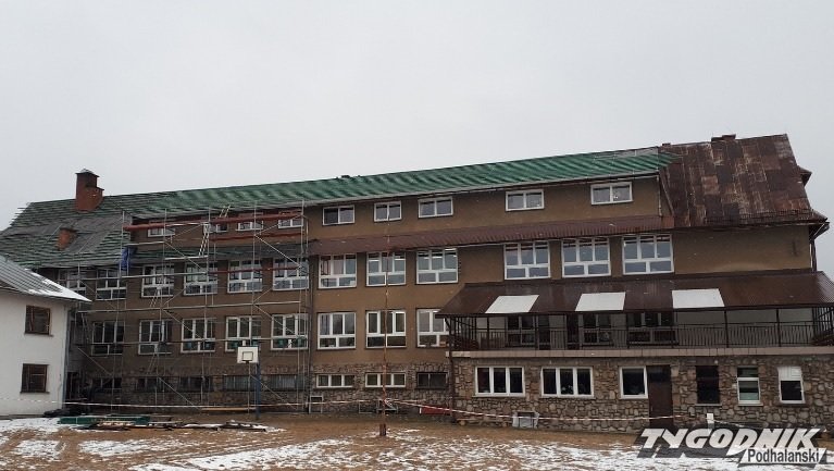 W Podczerwonem rozpoczął się remont dachu szkoły.