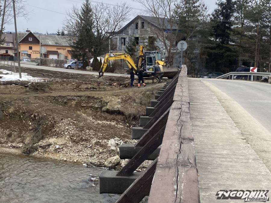 W asyście policji ruszyła budowa nowego mostu na Czarnym Dunajcu w Długopolu.