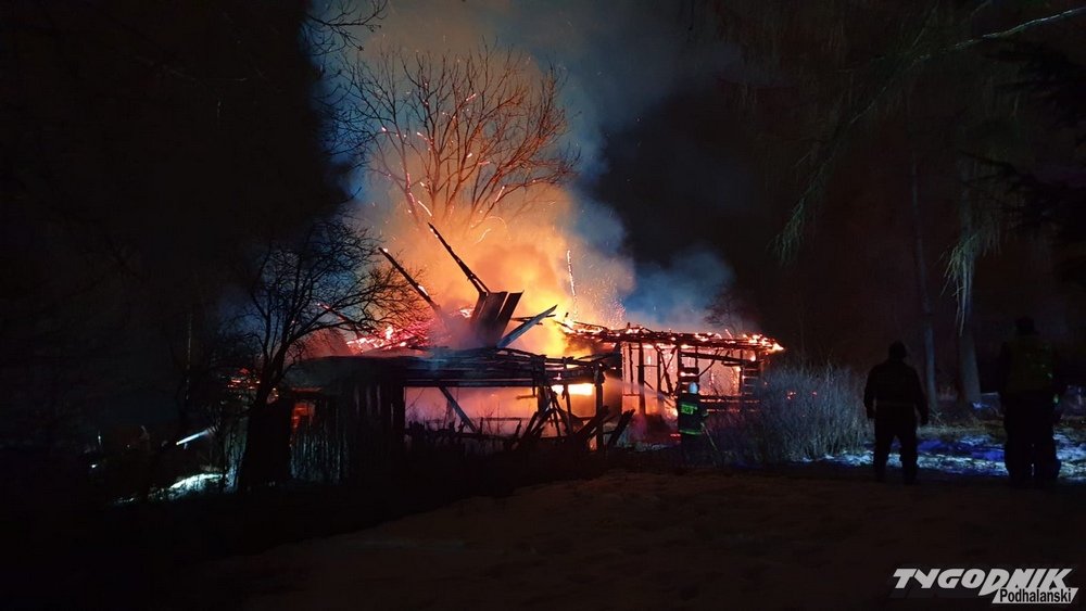 Na os. Budzów Wierch w Groniu (gmina Bukowina Tatrzańska) zapalił się opuszczony drewniany budynek. Nie było szans na jego uratowanie, w kilka minut cały stanął w ogniu.