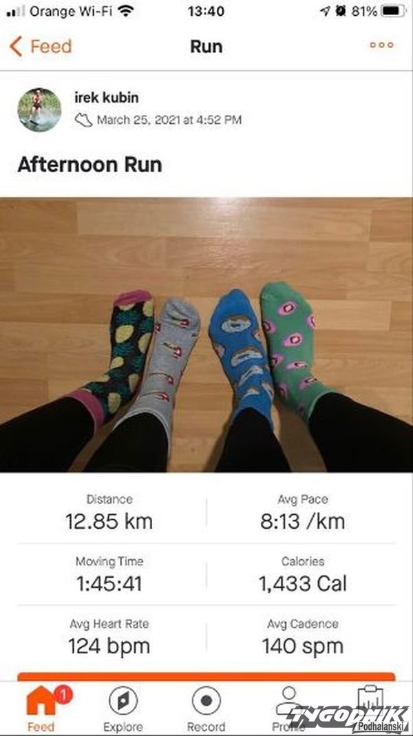 Każdy z uczestników w dowolny sposób (biegiem, marszem, biegiem narciarskim bądź nordic walking) miał do pokonania dystans minimum 1500 metrów. Organizatorzy zachęcali, by tę aktywność wykonać w kolorowych skarpetkach, koniecznie nie do pary, w geście sympatii i solidarności z osobami dotkniętymi trisomią chromosomu 21. Właśnie od liczby tego chromosomu wzięła się data Światowego Dnia Osób Dotkniętych Zespołem Downa, który przypada 21 marca.