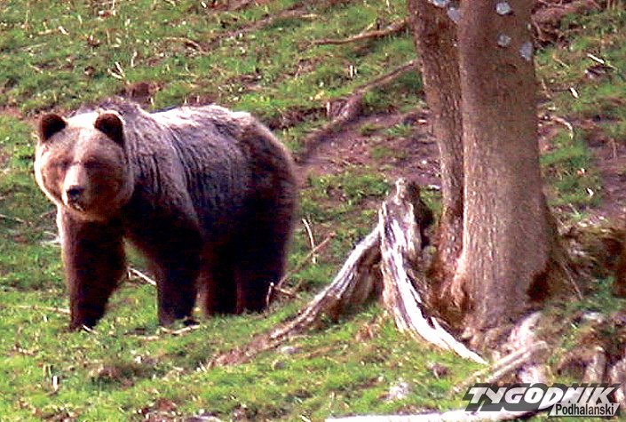 Nie chował. Ogromny futrzak, właśnie zgrabnie wywija tułów w stronę świerków, z których wylazł przed chwilą. A cała miśkowa fizjonomia zmiata ogromnymi susami. Od razu lepiej się czuję. Prawie jak pogromca niedźwiedzi. Mam satysfakcję, w końcu kudłatemu też musiało skoczyć ciśnienie. Wszystko byłoby dobrze, gdyby nie kac moralny. Siąpił deszcz i nie wyjąłem z plecaka aparatu fotograficznego. A przecież mogłem się spodziewać spotkania z niedźwiedziem. Gdybym tylko słuchał się, gdy łowczy „Kniei” zarzekał się na wszystkie świętości, że już więcej ani kukurydzy, ani owsa do paśnika nie wywiezie. I że miśka - próżniaka z własnej krwawicy nie będzie utrzymywał. Niedźwiedź, młody osobnik zawędrował w okolice Rabki jesienią ubiegłego roku. Tropienia przeprowadzone przez dra Jana Locha z Pracowni Naukowej GPN, a także obserwacje myśliwych Koła Łowieckiego „Knieja” pozwoliły ustalić, że miś przezimował pod Luboniem. Ostatnie sygnały o wielkim drapieżniku pochodziły z czerwca. Myśliwi obserwowali tropy niedźwiedzia w okolicy paśników. Miś chętnie żywił się karmą wykładaną dla dzików.