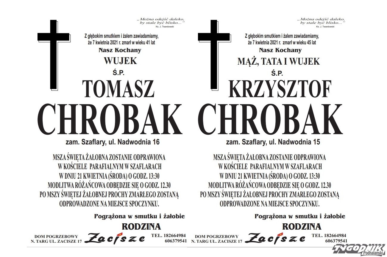 21 kwietnia w kościele parafialnym w Szaflarach odbędą się uroczystości pogrzebowe braci, którzy zmarli w tajemniczych okolicznościach.