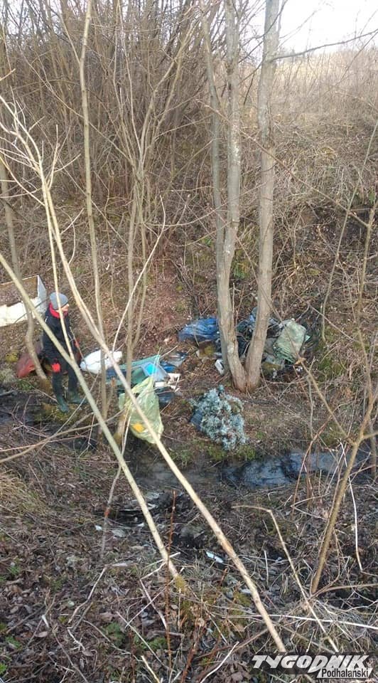 Spod śniegu wyszło mnóstwo śmieci. Gmina Lipnica Wielka zapewnia worki i rękawiczki.