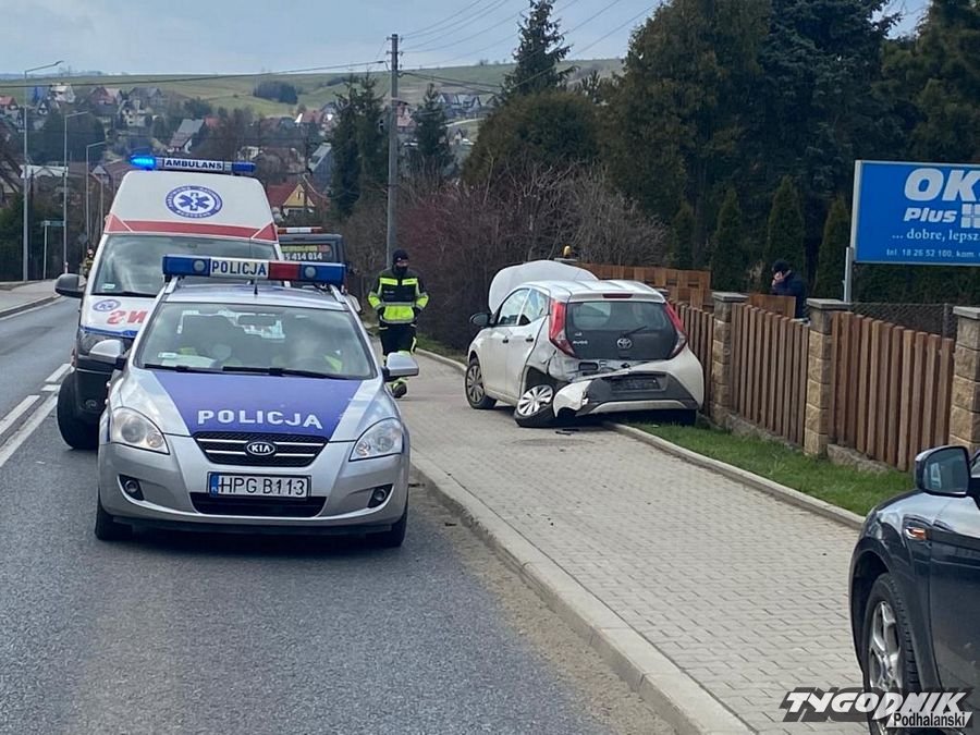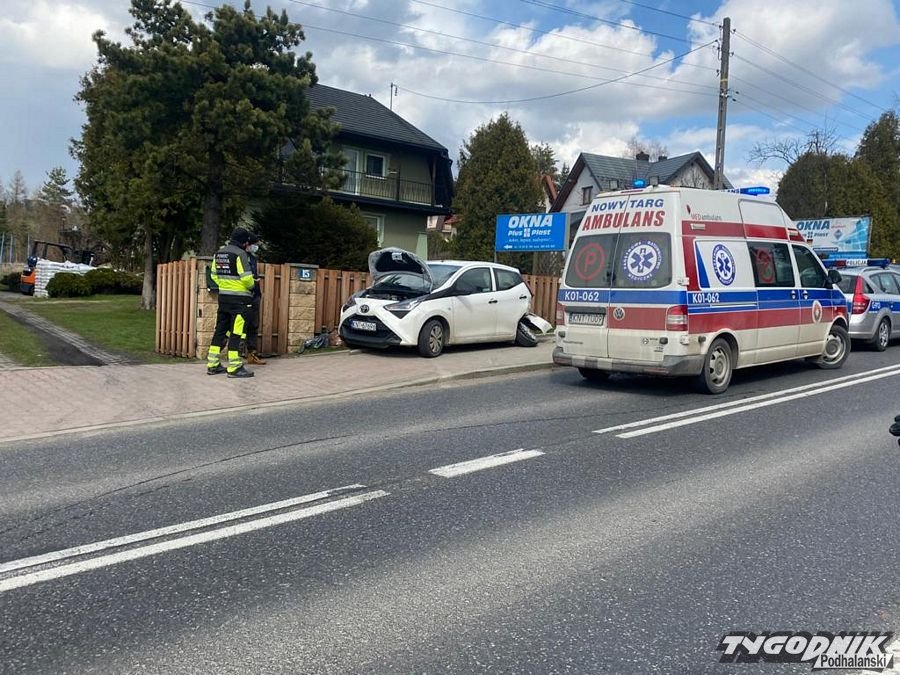 Wypadek zdarzył się przed 15 na drodze wojewódzkiej, przy wjeździe do Jabłonki od strony Czarnego Dunajca. Kobieta kierująca osobowym citroenem usiłowała skręcić w prawo w bramę przydrożnej posesji. Wówczas w tył auta uderzył inny samochód osobowy. Siła kolizji była bardzo duża. Citroen został bardzo poważnie uszkodzony a kierująca nim kobieta odniosła obrażenia i została zabrana do szpitala. W miejscu zdarzenia ruch jest utrudniony i odbywa się wahadłowo.