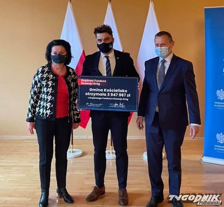 Wicewojewoda wraz z posłanką rozdawali pod Giewontem symboliczne czeki samorządowcom.