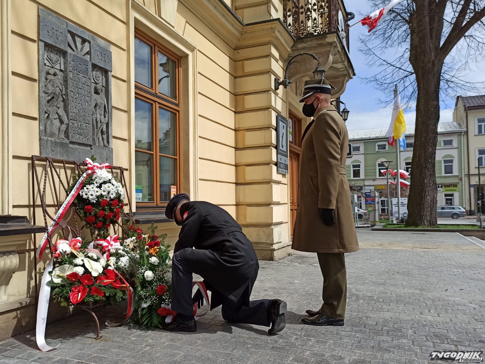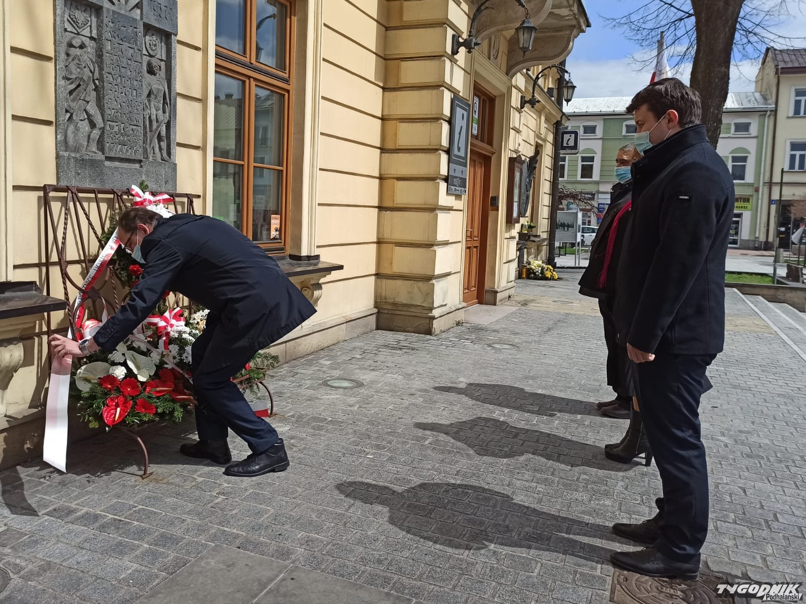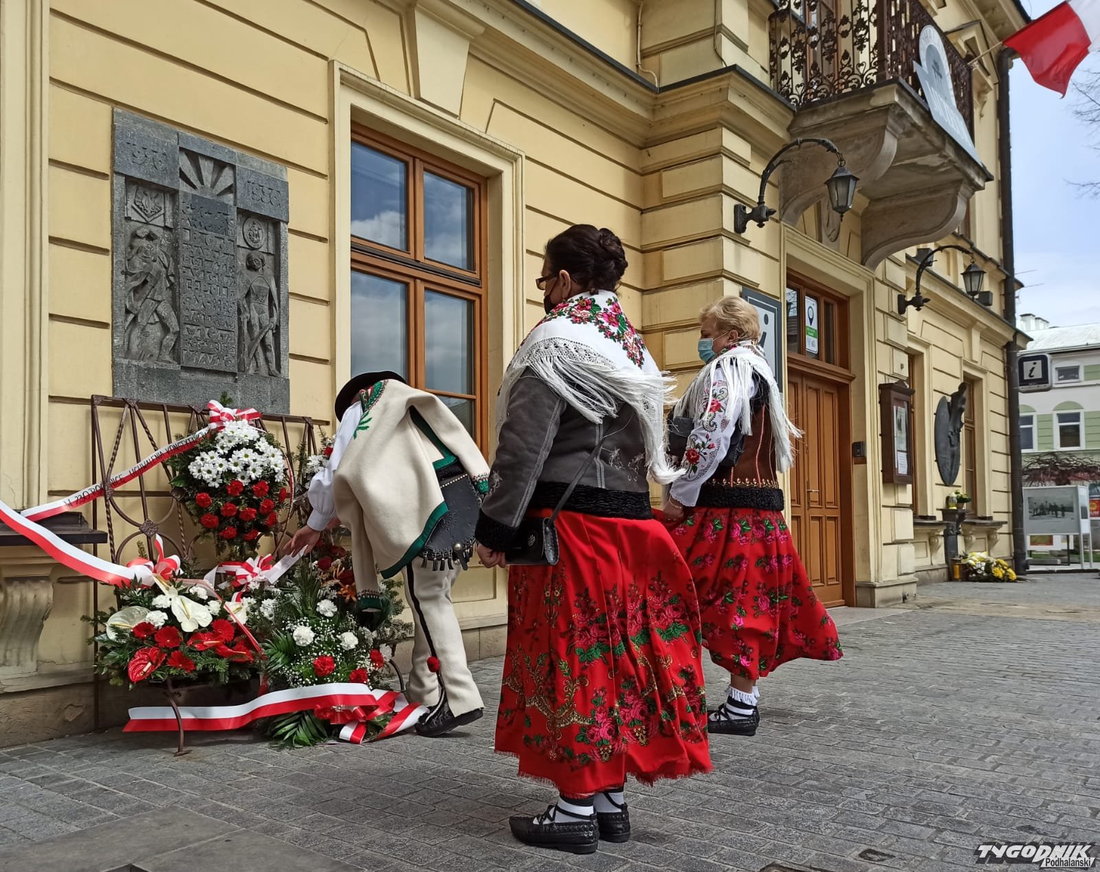 Po mszy władze Nowego Targu, powiatu, samorządowcy i mieszkańcy złożyli wiązanki przed budynkiem Ratuszu na nowotarskim Rynku.