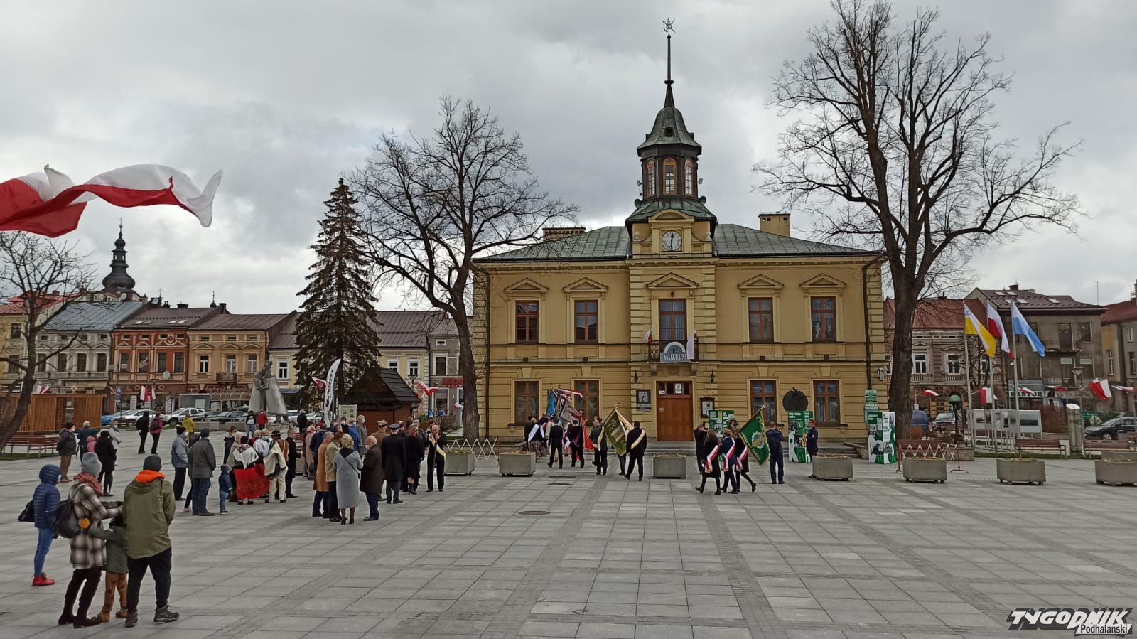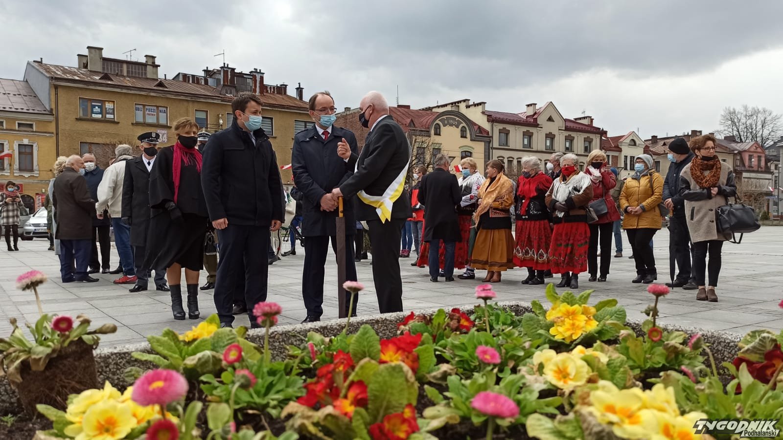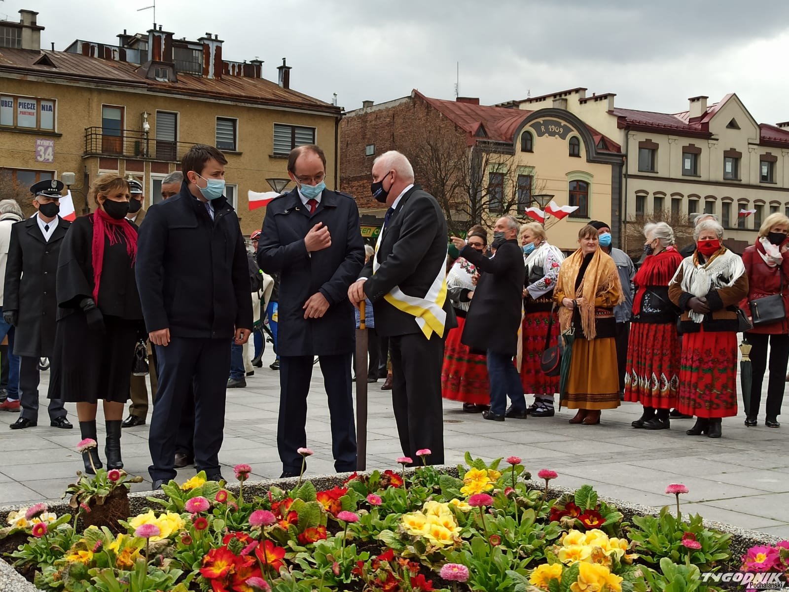Po mszy władze Nowego Targu, powiatu, samorządowcy i mieszkańcy złożyli wiązanki przed budynkiem Ratuszu na nowotarskim Rynku.