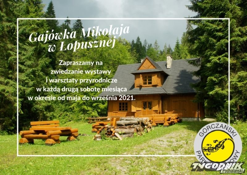 Przy okazji GPN przypomina, iż ekspozycja w Gajówce Mikołaja i warsztaty przyrodnicze dla turystów indywidualnych i grup rodzinnych w okresie od maja do września dostępne są w każdą drugą sobotę miesiąca w godz. 10-15.