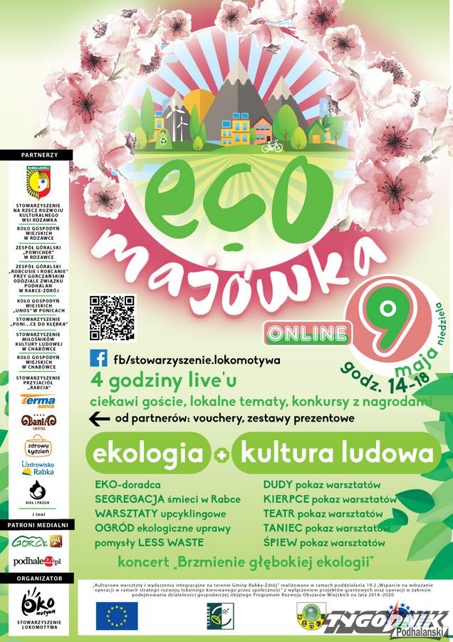 Zapraszamy do udziału w EKO-majówce, pikniku kulturowo-ekologicznym organizowanym przez Stowarzyszenie Lokomotywa przy współpracy z Urzędem Miasta Rabka-Zdrój. Piknik odbędzie się 9 maja w wersji online. Będzie skierowany do wszystkich mieszkańców gminy Rabka-Zdrój i będzie mówił o sprawach im bliskich, o powietrzu, wodzie, glebie i śmieciach. A także o tradycji - z przedstawicielami lokalnych stowarzyszeń porozmawiamy o dawnych zwyczajach, o góralskim zero waste, czyli dobrych praktykach naszych dziadków. Na live na fb będzie można powalczyć o wyjątkowe nagrody ufundowane przez naszych partnerów i wystawców. Część zostanie wykonana przez panie z miejscowych kół gospodyń wiejskich, np. domowe ciasta, chleby lub obiad dla rodziny. Konkursy będą poprzeplatane pokazami działań warsztatowych lokalnych organizacji - informują organizatorzy.