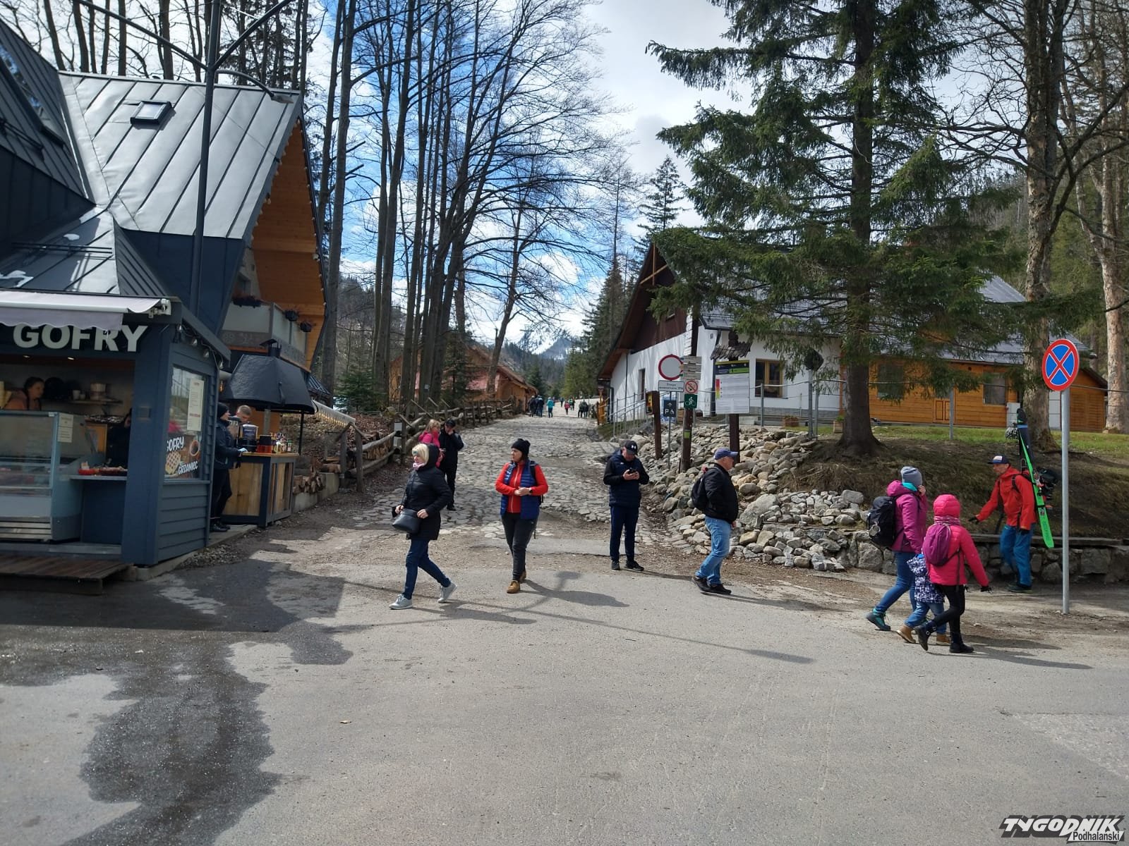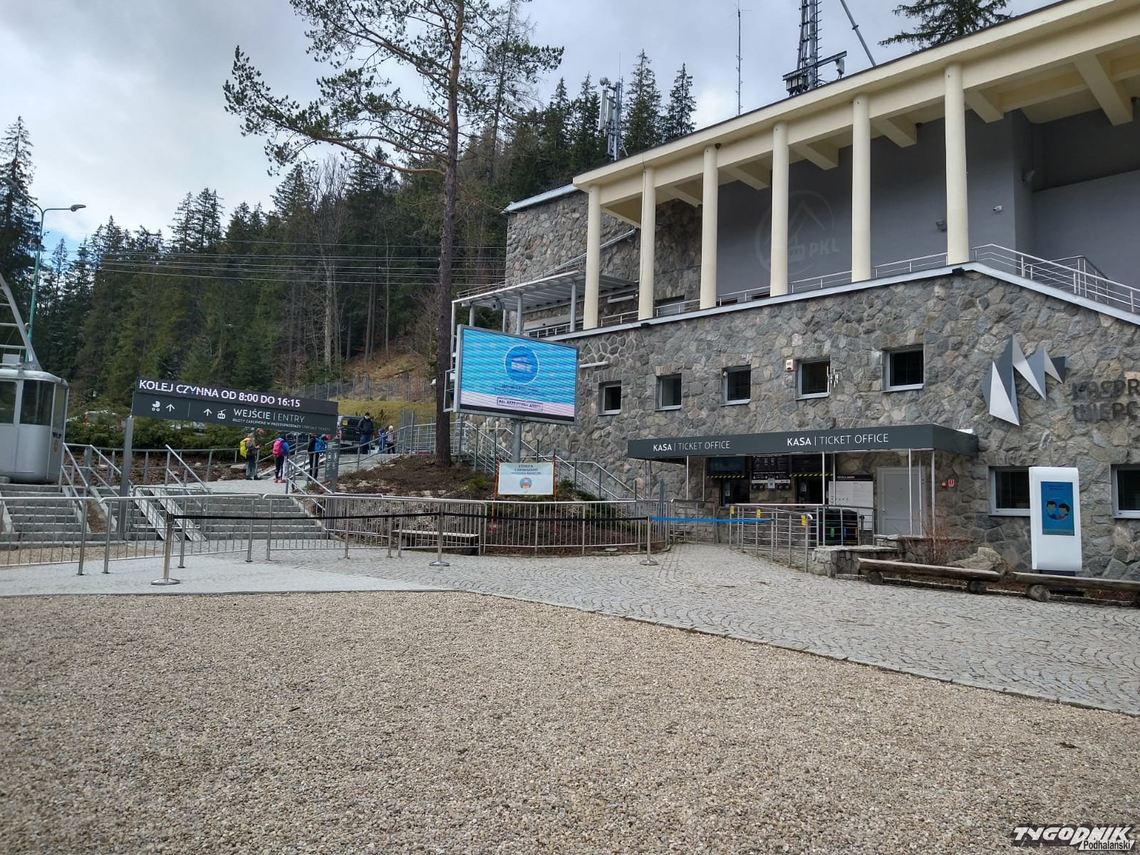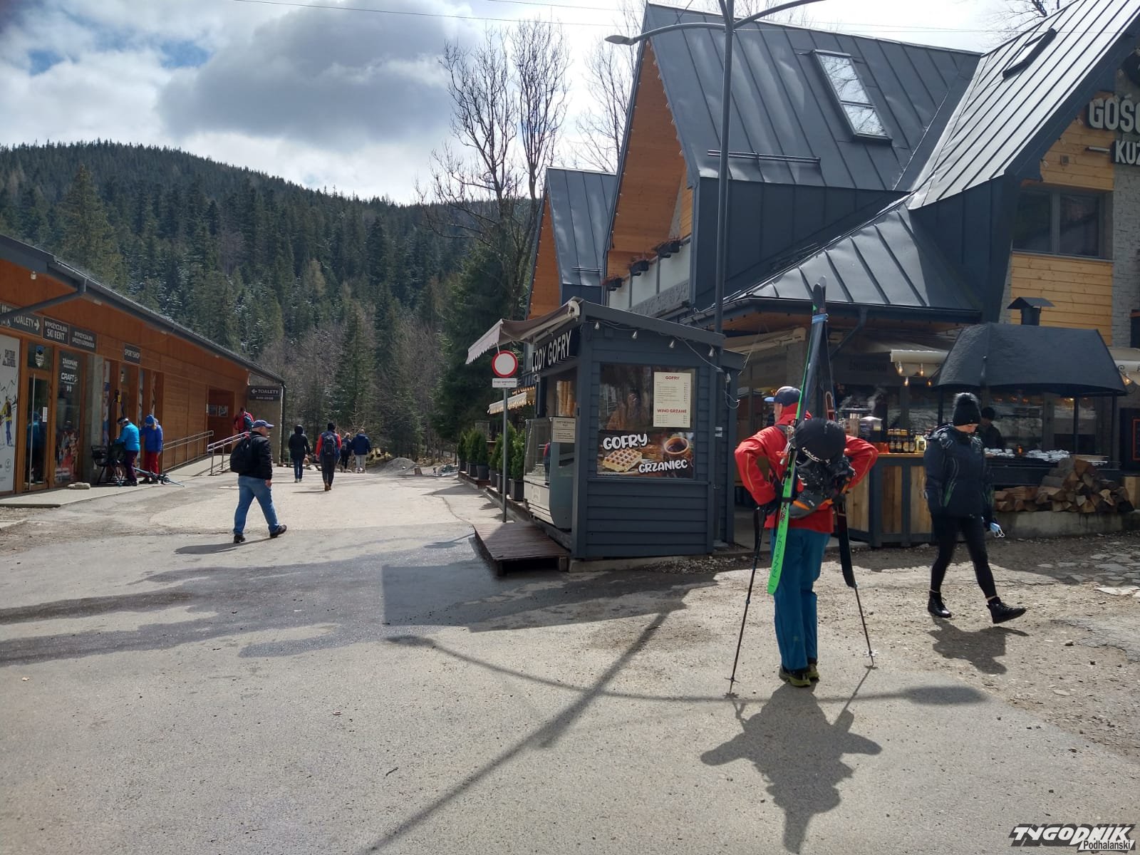 Kolejka na Kasprowy Wierch kursuje, ale chętnych prawie wcale nie ma. Turyści którzy dotarli do Kuźnic wybierają raczej piesze wycieczki w góry. Pojawili się skitourowcy, ale w poszukiwaniu śniegu trzeba podchodzić w butach coraz wyżej.
