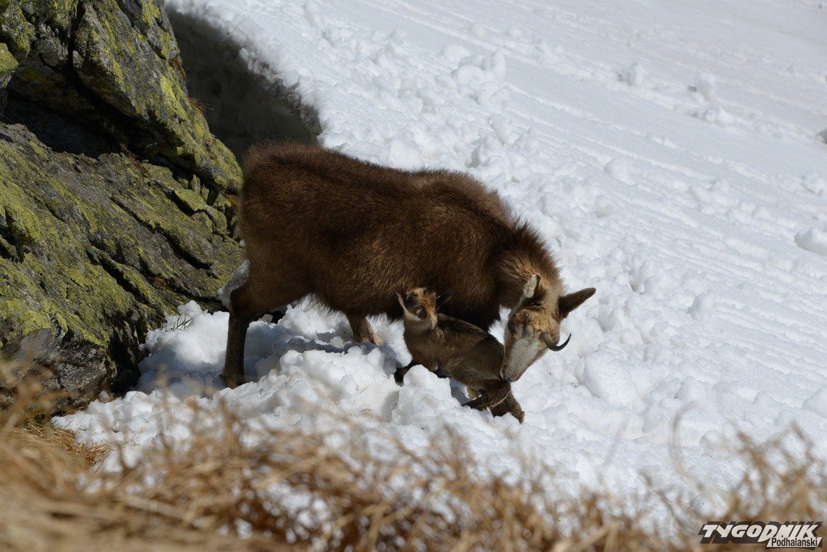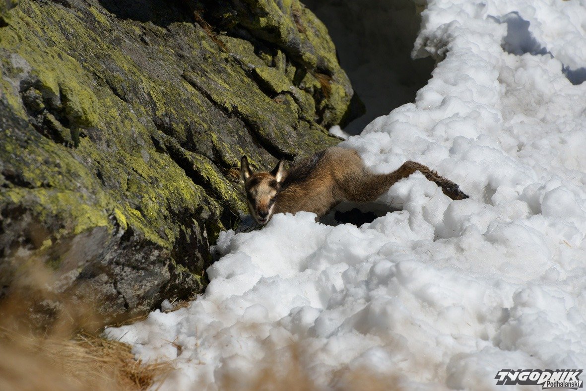 To koźlątko pod Suchymi Czubami jeszcze jest zupełnie nieporadne.