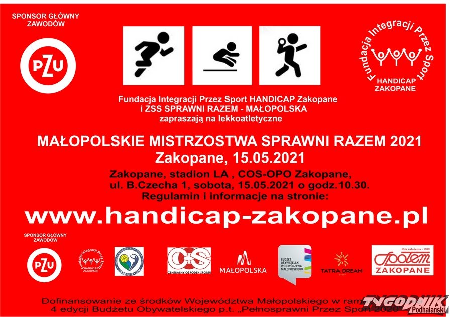 Fundacja HANDICAP Zakopane zaprasza sportowców z niepełnosprawnością na zawody w lekkoatletyce, które odbędą się w sobotę, 15.05.2021 r. na stadionie COS-OPO w Zakopanem w godz. 10.30-13.00.