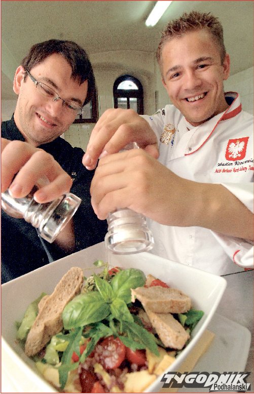 Kuchnia góralska nie musi kończyć się na tradycyjnej kwaśnicy czy moskolu. Jagnięcina, kapusta, bryndza czy oscypek mogą być zaczątkiem kulinarnej przygody w wykwintnym wydaniu. Letni mix sałat z oscypkiem, pomidorkami koktajlowymi w konfiturze z czerwonej cebuli - to propozycja zakopiańskich kucharzy - Sebastiana Krauzowicza i Sylwestra Lisa.