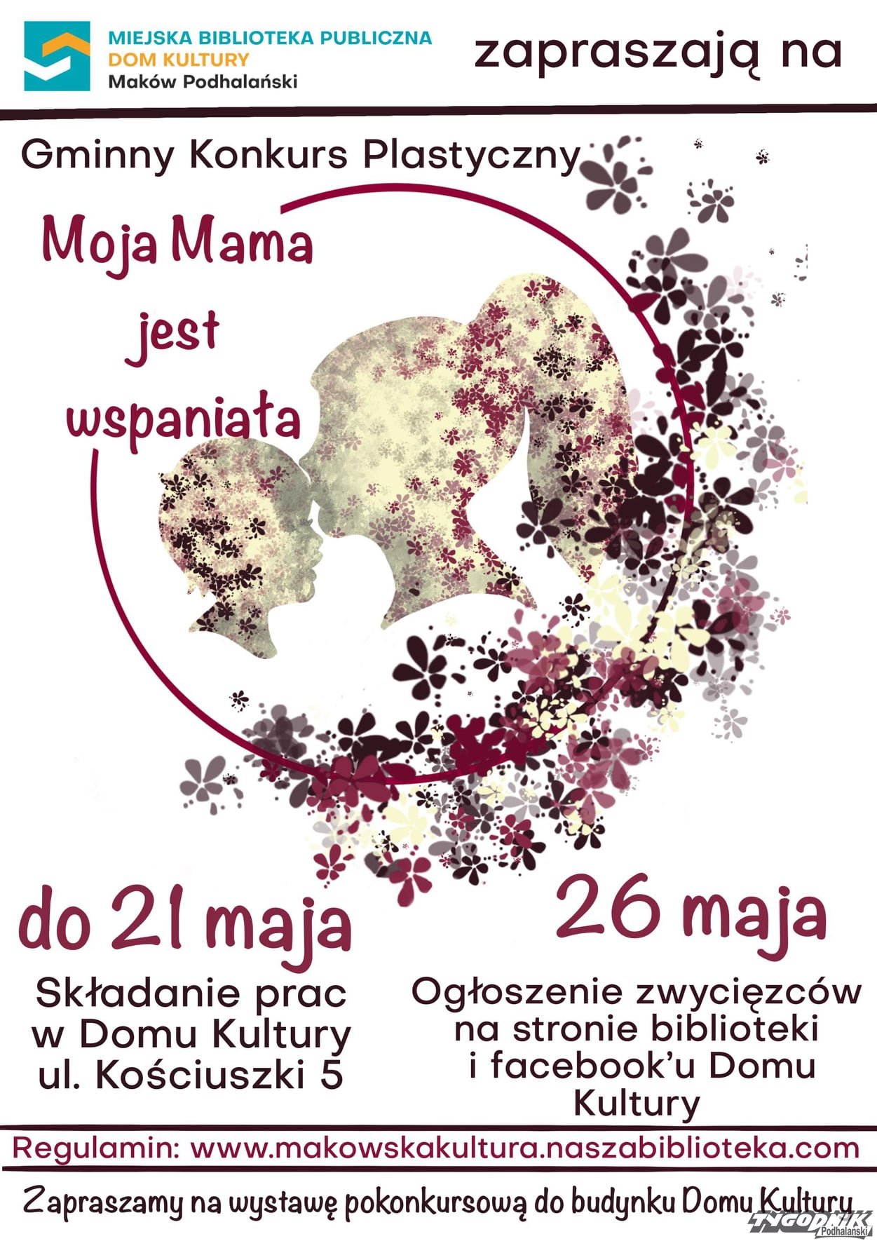 Miejska Biblioteka Publiczna i Dom Kultury w Makowie Podhalańskim zapraszają młodych artystów do udziału w Gminnym Konkursie Plastycznym "Moja mama jest wspaniała".