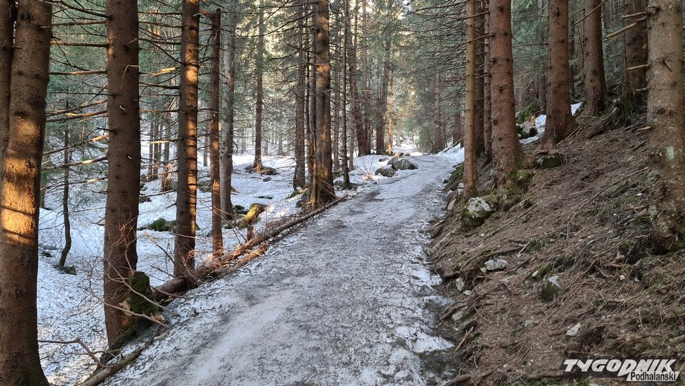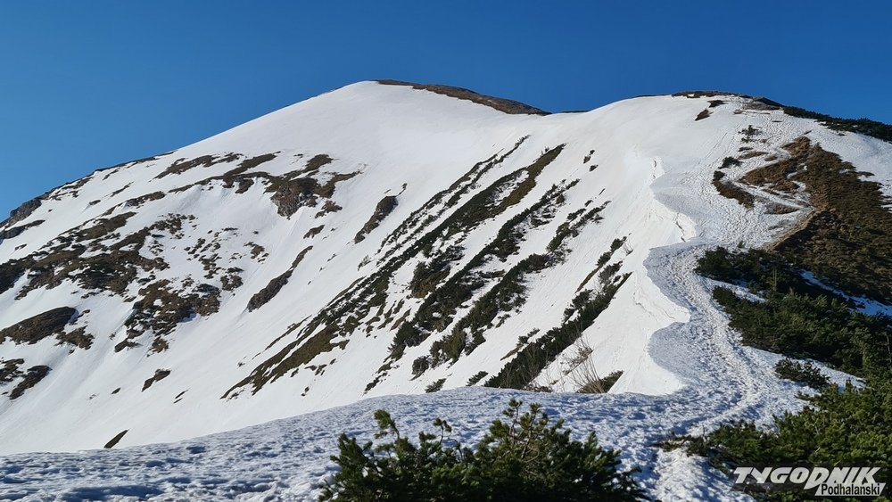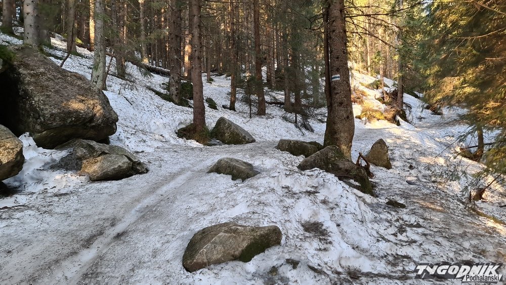 Dziś rano na szlaku na Kondratową lód i śnieg zaczynał się powyżej Kalatówek, do pokonania stromszego odcinka szlaku potrzebne były raczki. Powyżej Hali Kondratowej śnieg jest już mokry, przepadający, miejscami leży ponad półmetrowa warstwa. Na Kasprowym dziś rano było to ok. 80 cm.